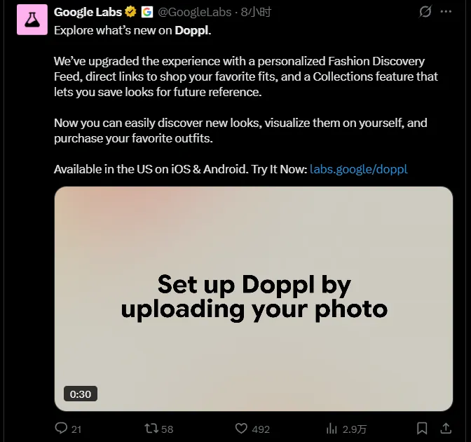 In the current era of deep integration of e-commerce and technology, major platforms are constantly exploring innovative shopping models to attract users and seize the market. On December 9, 2025, Google announced in a tweet on its official account on the famous social media platform "X" that it has launched a highly innovative feature in its AI try on experiment application Doppel - the "Shoppable Discovery Feed", which has caused new waves in the e-commerce field.